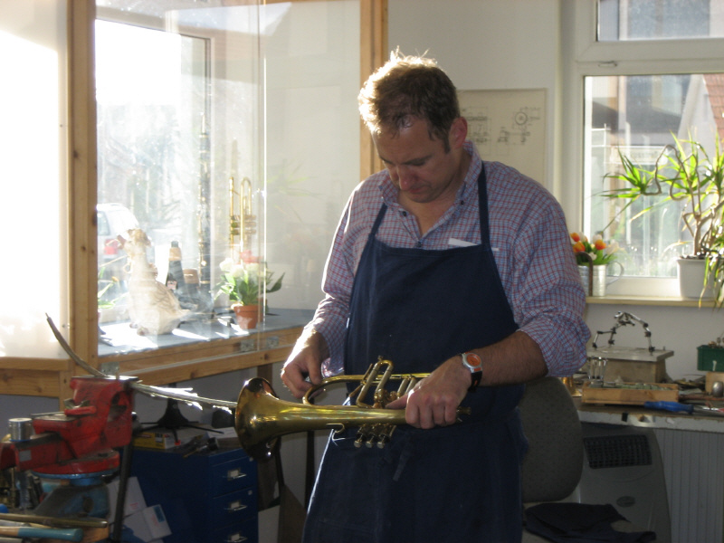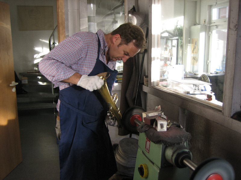 Die Reparaturen umfassen die verschiedensten Arbeiten, wie z.B. das Ersetzen von Wasserklappenfedern, Lötarbeiten, Ventilüberholungen, Ausbeularbeiten, bis hin zu Generalüberholungen. Entlackungen und Lackierungen werden aufgrund von Umweltbedenken bzw. aus wirtswchaftlichen Gründen nicht selbst ausgeführt. Diese lassen wir bei der Firma Leopold Müller durchführen. Natürlich können wir Ihr Instrument in einem galvanischen Betrieb auch versilbern oder vergolden lassen.